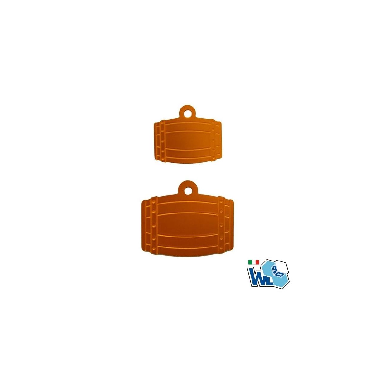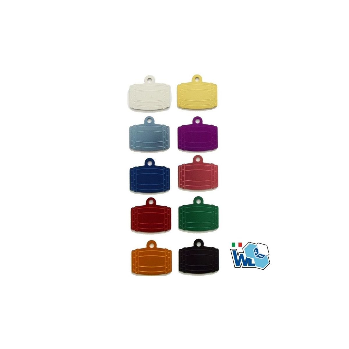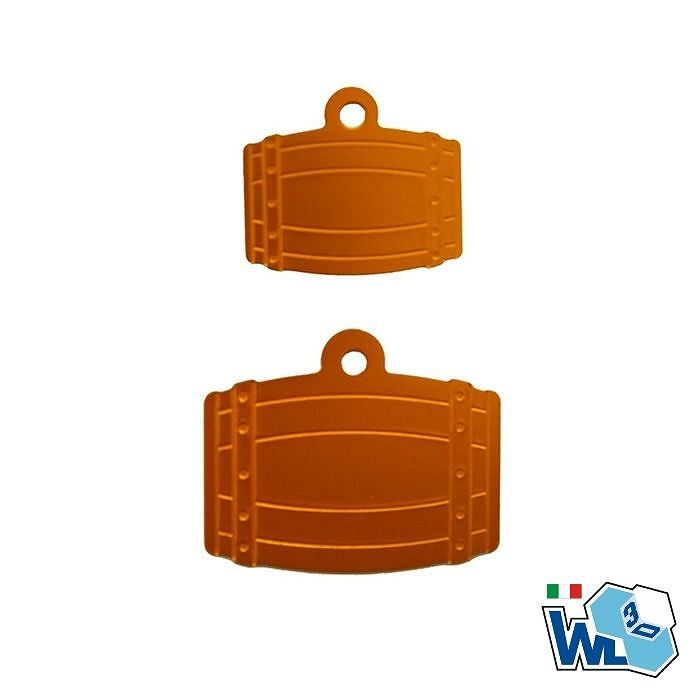 Medaglietta a forma di botte in alluminio anodizzato - Confezione da 5 pezzi